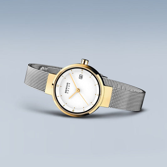 BERING Classic Polished Silver 26mm Blue Sunray Dial Women's Watch 14526-307