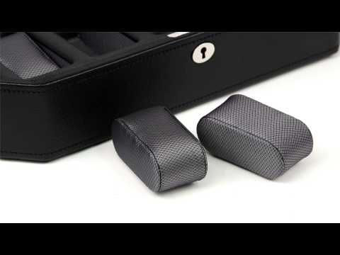 Retro shapes and colors make Windsor a perfect companion for your timepieces. Display and organize your collection beautifully with the Windsor 5-piece watch box. Features chrome finished hardware, locking glass cover, smooth vegan leather, lining and 5-piece watch storage.