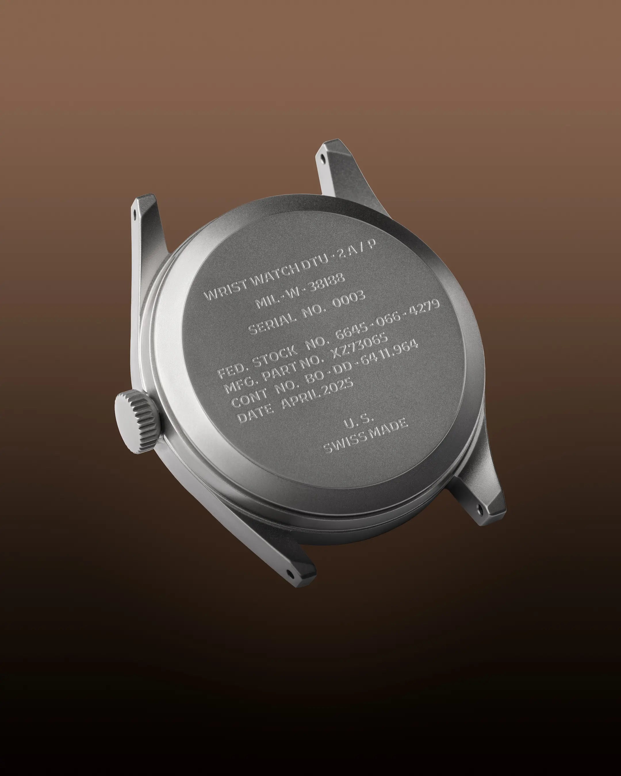 | Case Back | Closed Case Back / Sandblasted Stainless Steel / MIL SPEC Engraving |
