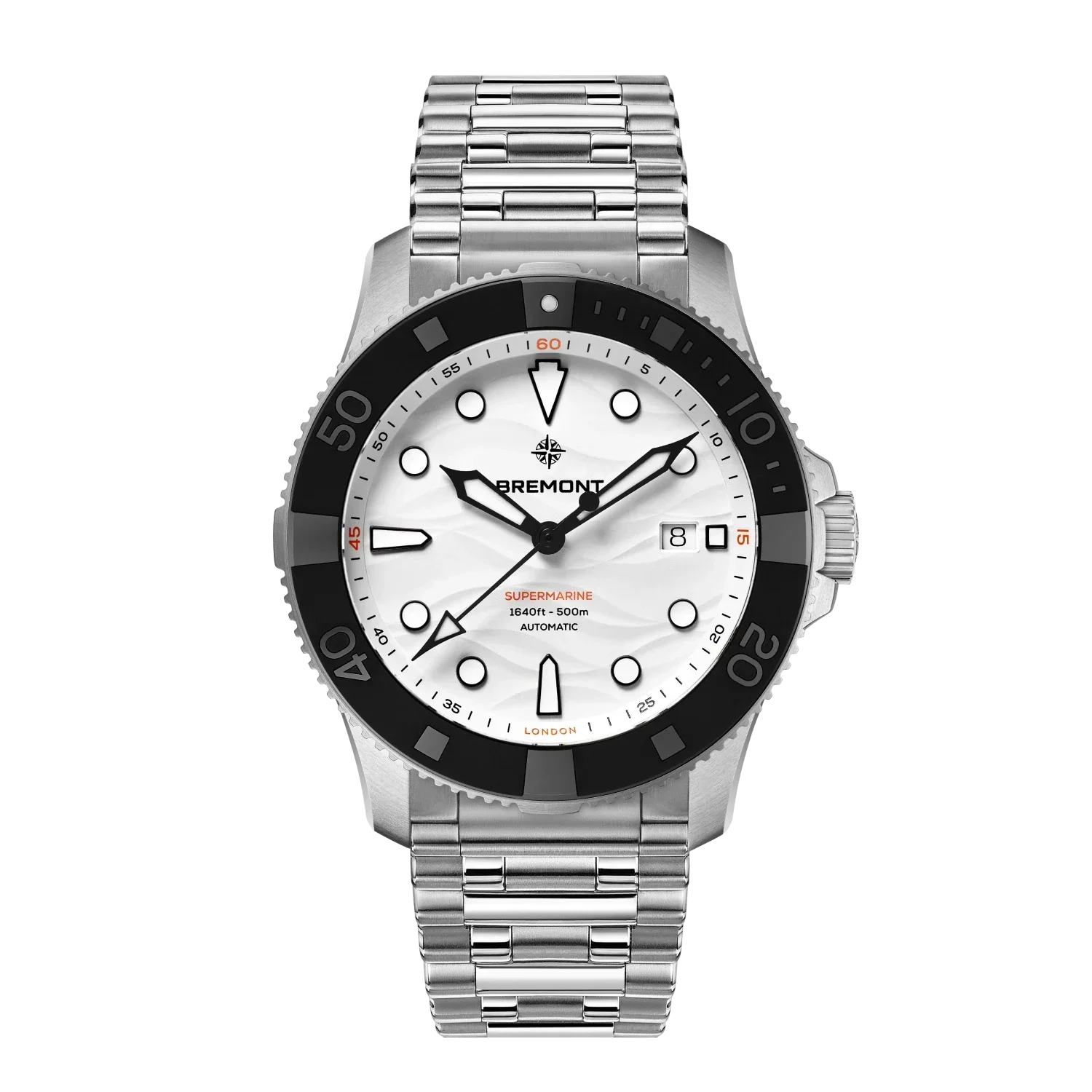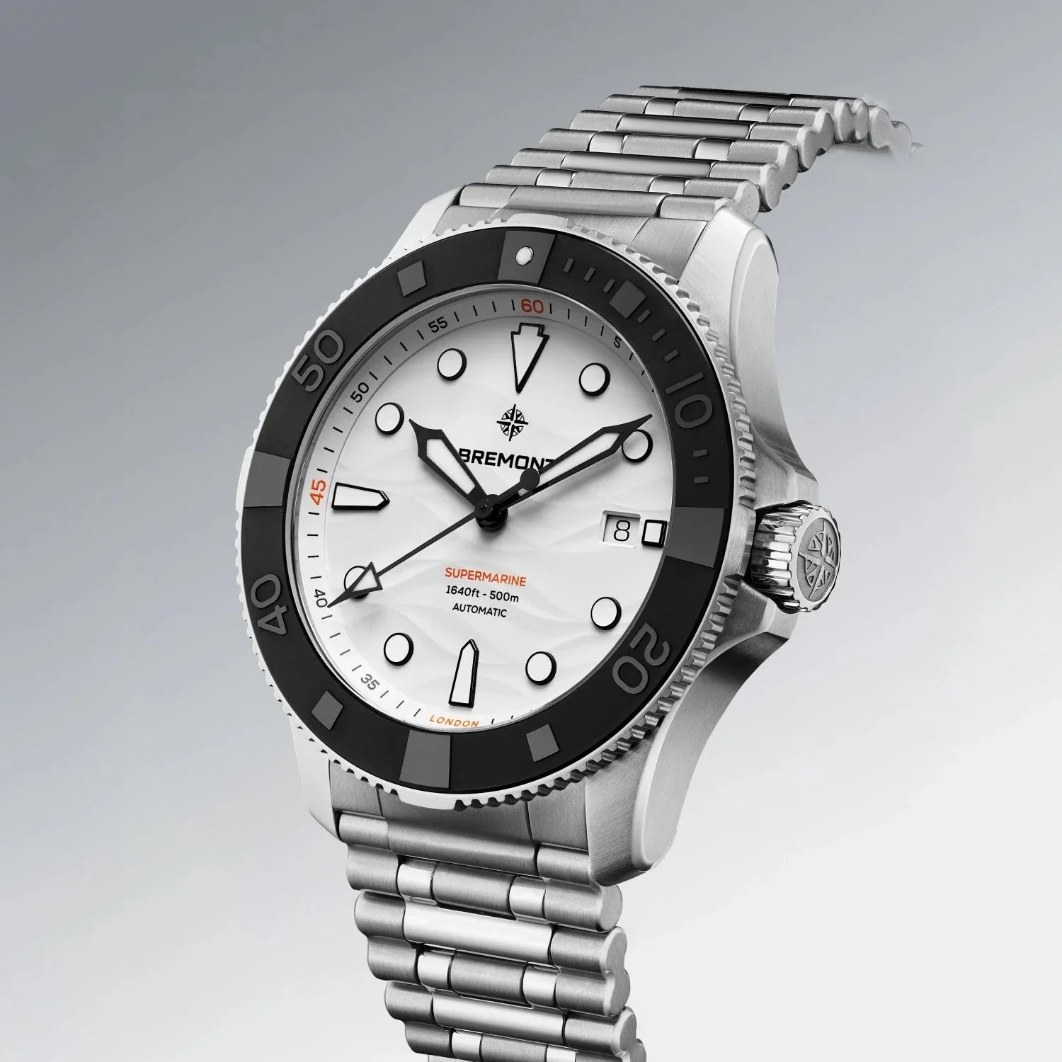 Available on Bremont’s newly engineered quick-release Supermarine bracelet – with micro-adjustment and polished-satin infinity links – or a high-performance rubber or NATO strap, this is a rugged yet refined dive watch made for those who take it further.