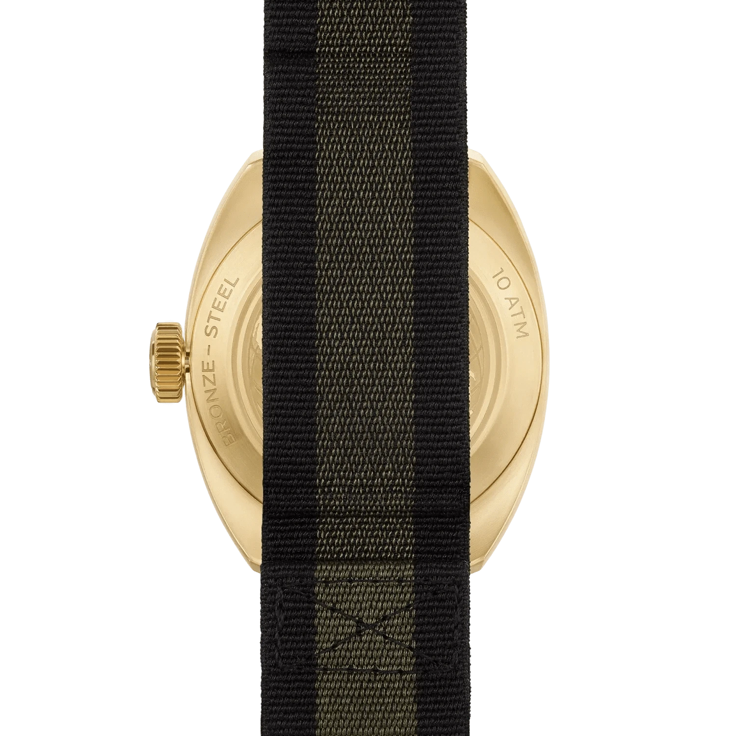 This model is available on a black and green NATO strap with PVD bronze-coloured stainless steel loop.