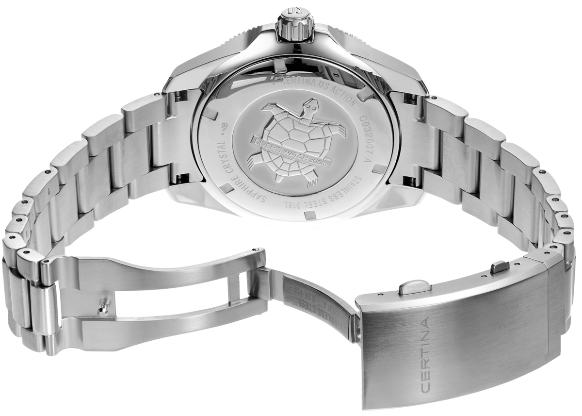 Discover excellence with this robust watch designed for adventurous men. Equipped with the automatic Powermatic 80 movement, offering an impressive 80-hour power reserve, the DS Action Diver combines performance and reliability. Its 43mm stainless steel case and anti-reflective sapphire crystal ensure exceptional durability. Water-resistant up to 300 metres and featuring a convenient date window, it perfectly embodies Certina's tried-and-tested DS concept. Whether you're exploring the ocean depths or tackling your daily routine, this ISO 6425 certified diving watch will accompany you with precision and style.