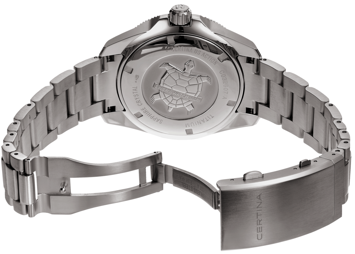 The 21st century places exceptional demands on our timepieces. High-end wristwatches today have to prove themselves in three ways at once: in style, resistance and precision. With its most recent edition of the popular DS Action Diver, Swiss watchmaker Certina has created a winner in all three areas. The 43-mm diver’s watch scores high with its timelessly elegant design, water resistance to 300 metres, and a modern automatic movement with anti-magnetic balance spring.