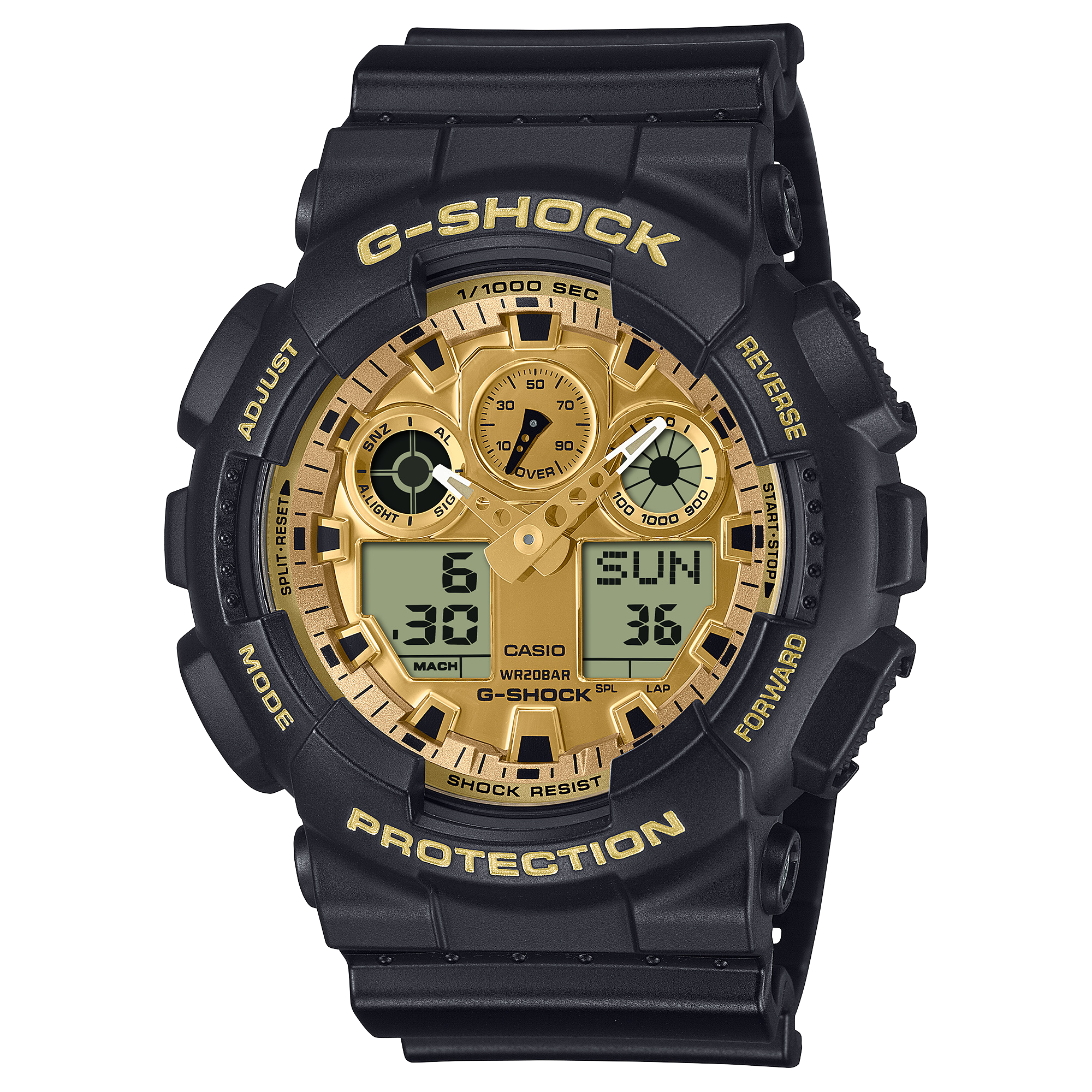 Choose the GA100GGB-1A9 or GA010GGB-1A9 with watch face gleaming all over in the unmistakable color of gold, thanks to the radiant gold-colored vapor deposition and gold-colored mirror LCD. The band and case are finished with a glossy coating for a sleek, lustrous look.
