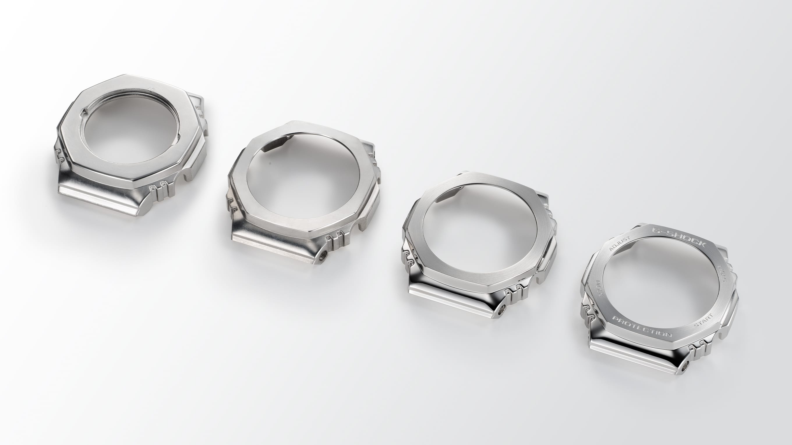 Choose your favorite color combination of vapor deposition finishes — the GBM2100A-2B with blue dial and silvery indexes, the GBM2100A-4B with burgundy dial and silvery indexes, or the GBM2100A-8B with light yellow gold-colored dial and black accented indexes.