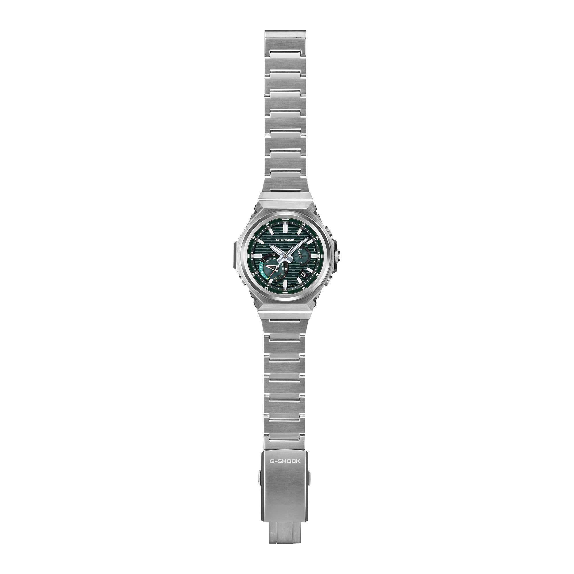 The bezel goes logo-free for a clean, modern look, while three separate finishes — vertical hairline, circular hairline, and mirror polishing — create a rich and sophisticated textural appeal that changes as light is reflected at different angles. The mirror- and hairline-finished solid stainless-steel band is paired with a tri-fold clasp also crafted from solid stainless steel. This sharp, flat design takes you from business meetings to casual settings to outdoor activities with ease.