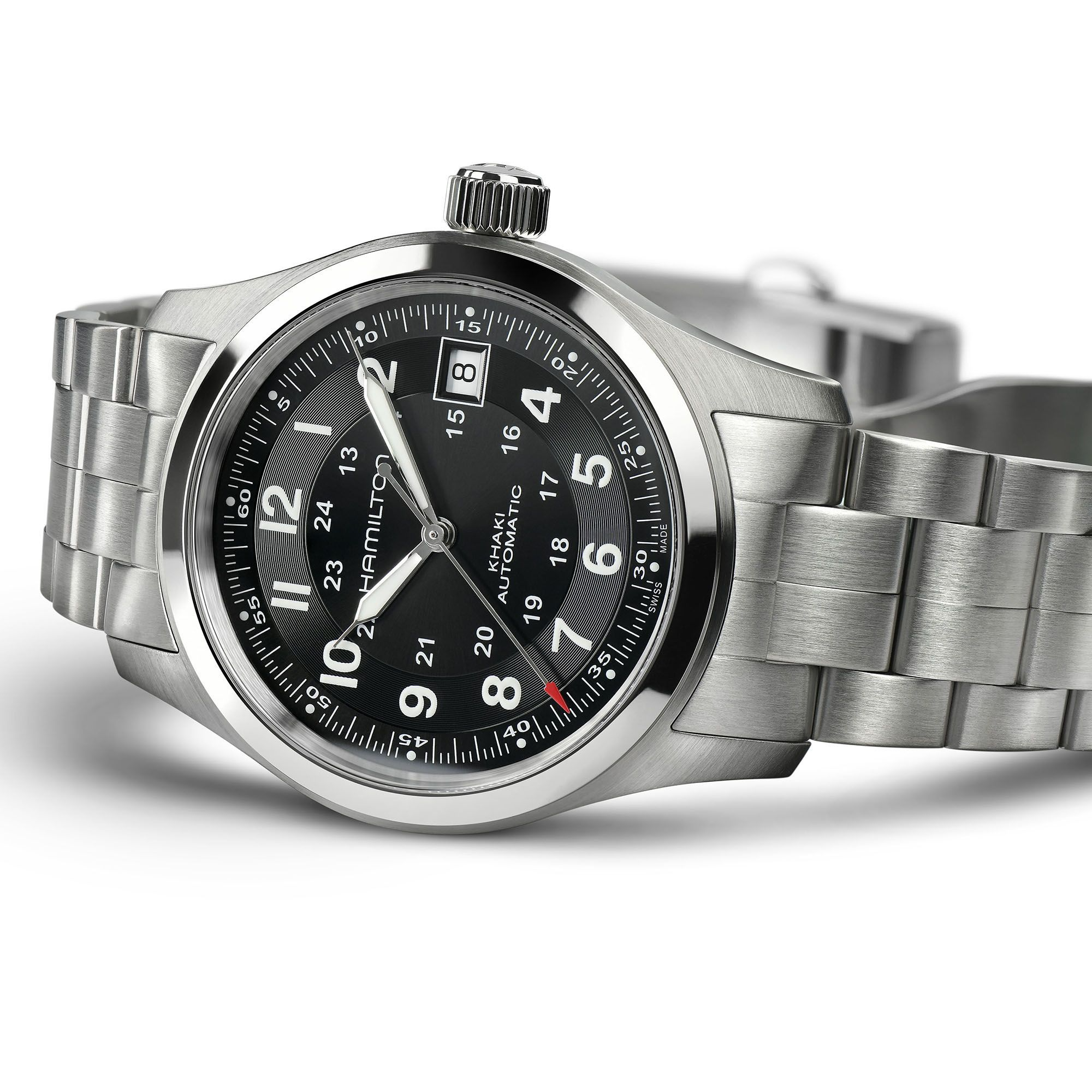 When you're planning an expedition, your essential equipment is reliable, resilient, functional and compact. At 38mm, this watch is punching above its weight when it comes to military inspired features. Bold looks, a rugged and robust case and strap and a movement that won't let you down. With 80 hours of typical power reserve in the exclusive H-10 automatic caliber, the Khaki Field Auto will keep you going.