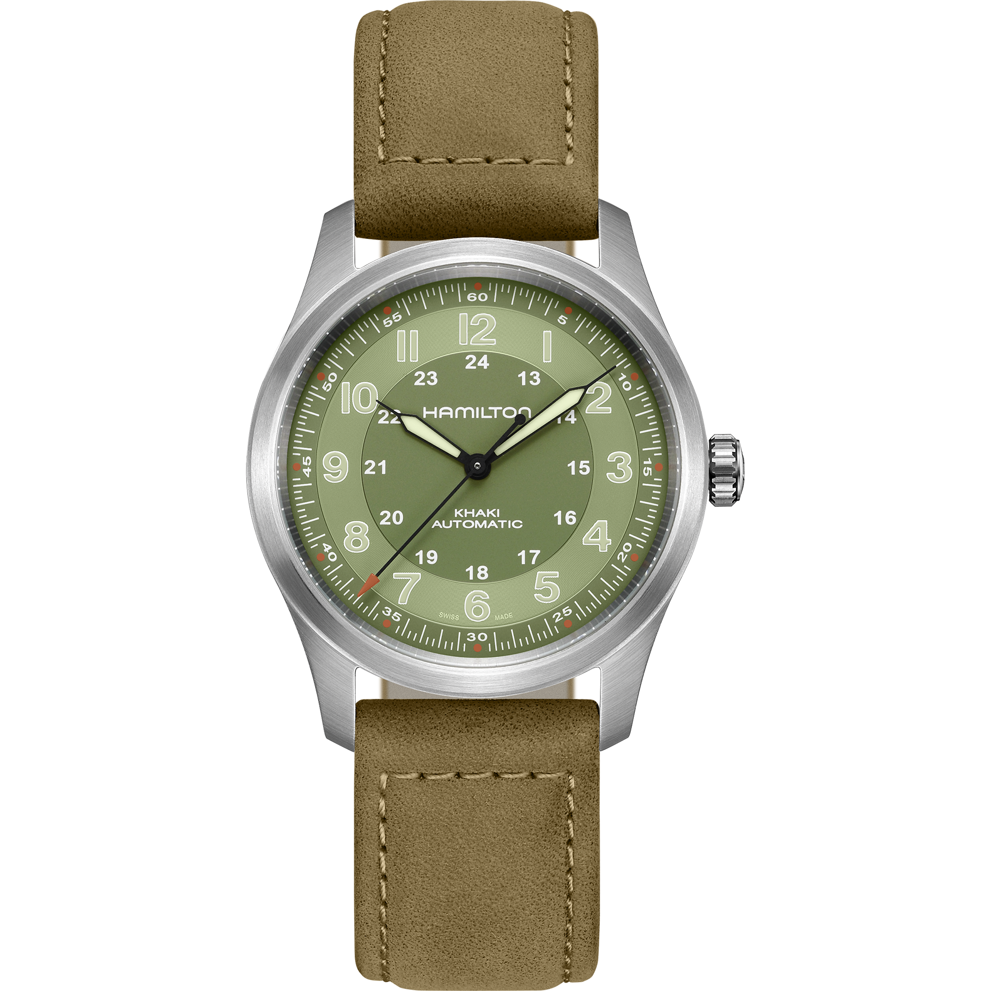 A century-long pedigree in military timepieces combined with lightweight materials make the Khaki Field Titanium Automatic the ultimate all-purpose watch for modern heroes. Truly fit for life in the field, the 38mm case size accentuates comfort and adaptability with a historically authentic design.