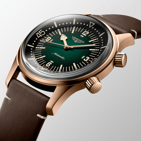 Exclusive to the Longines Legend Diver Watch Bronze, this model includes a second strap in green NATO-type nylon and a tool for easy swapping of the straps as desired. The case and clasp of this model are made of bronze, which evolves over time and can change color, rendering each piece unique. This version of the Longines Legend Diver watch benefits from a five-year warranty.
