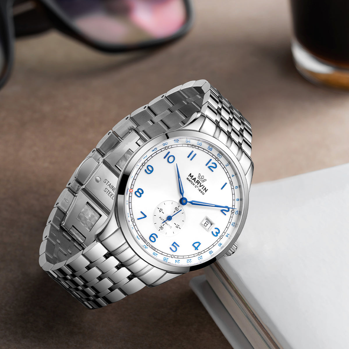 | Strap Material | Stainless Steel with Marvin Logo Buckle |