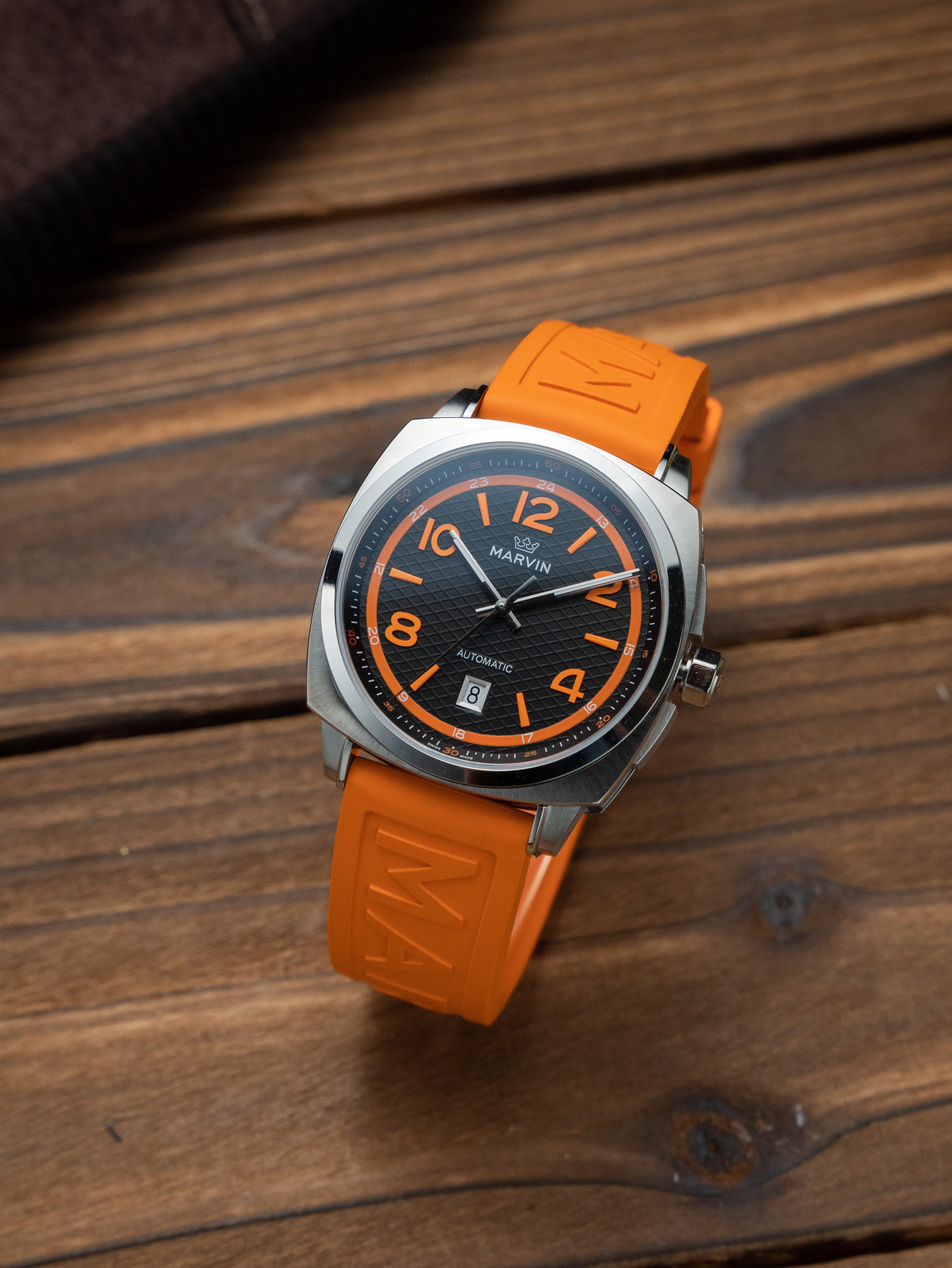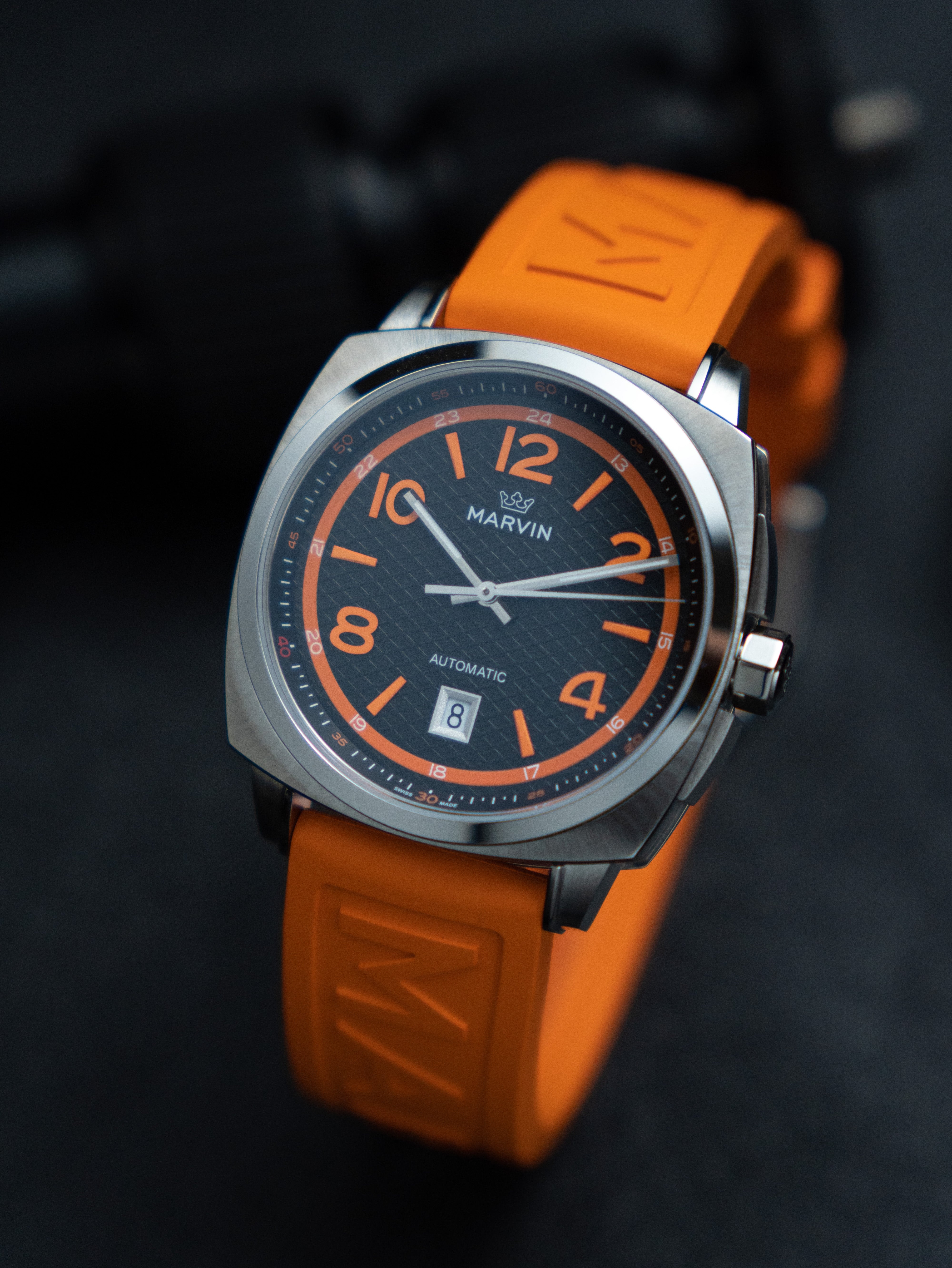 Marvin Malton Cushion 42mm Black & Orange Dial Men's Watch M119.13.63.96