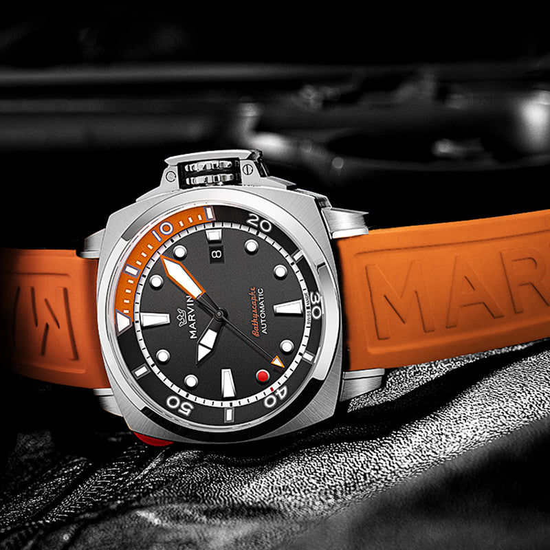 | Dial Features | Date Display / Luminous Hands & Markers / 1/4 Orange Diving Scale |