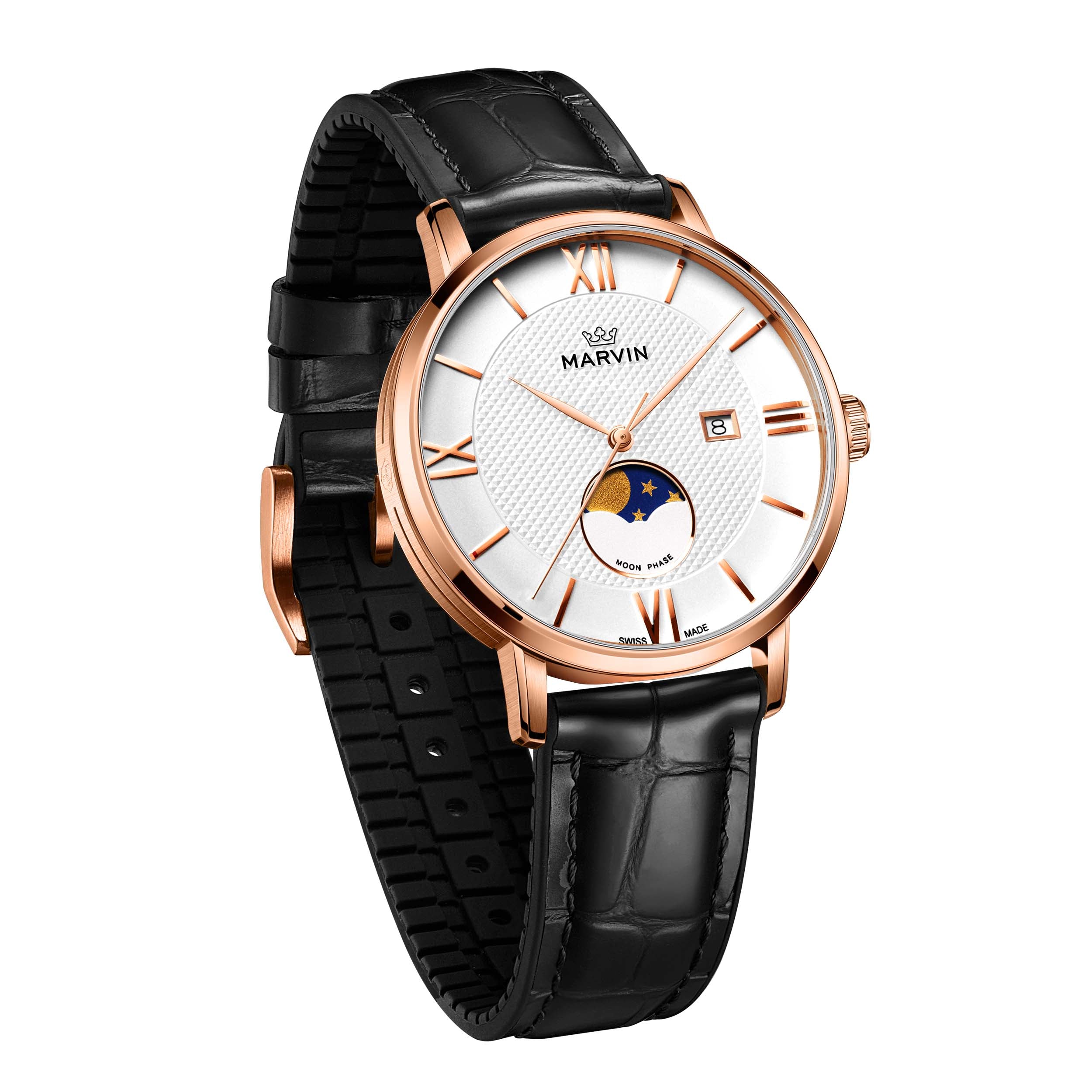 | Strap Material | Calf Leather with Silicone Backing Strap and Marvin Logo Buckle |