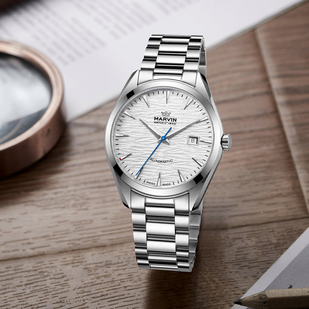 | Strap Material | Stainless Steel with Marvin Logo Buckle |