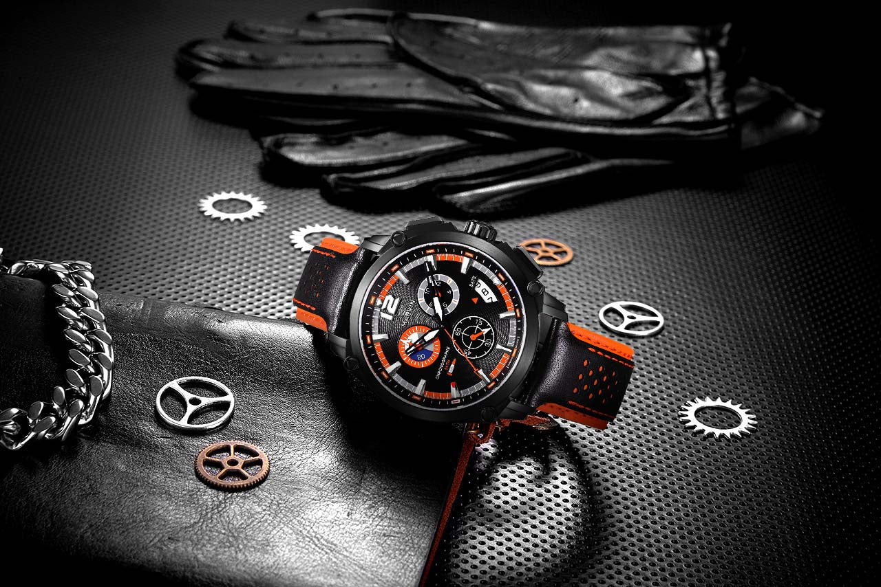 | Strap Color | Two-Tone (Black with Orange Stiches) |