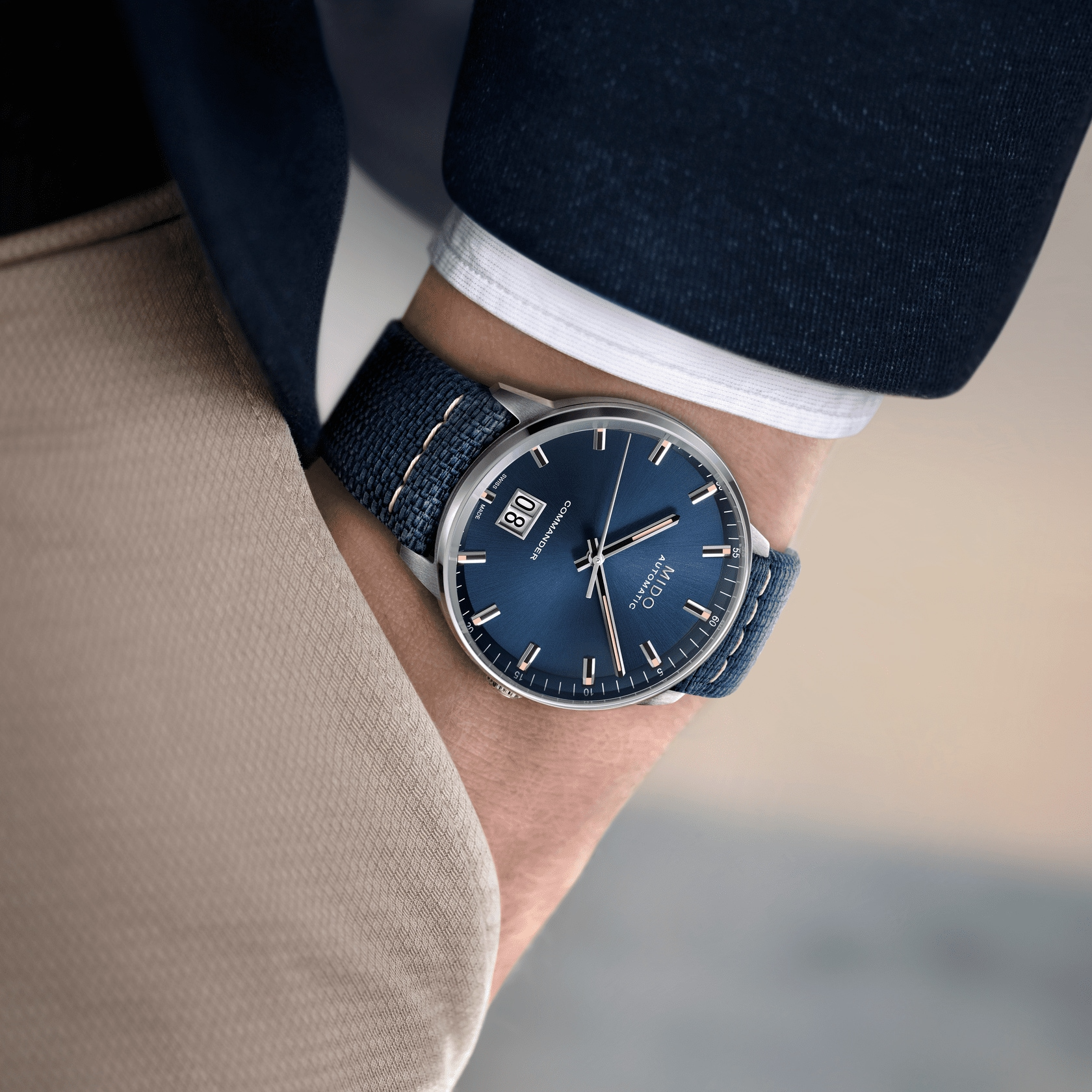 The Commander Big Date Swiss watch celebrated the 100th anniversary of the brand in 2018. Its large date aperture at 6 o'clock offers unrivalled date legibility. The sunray satin-finished dial is extremely pure and protected by an elegant round case in satin-finished stainless steel and enhanced by a polished bezel. This anthology and iconic piece is fitted with the Caliber 80, an automatic watch movement that offers up to 80 hours of power reserve.