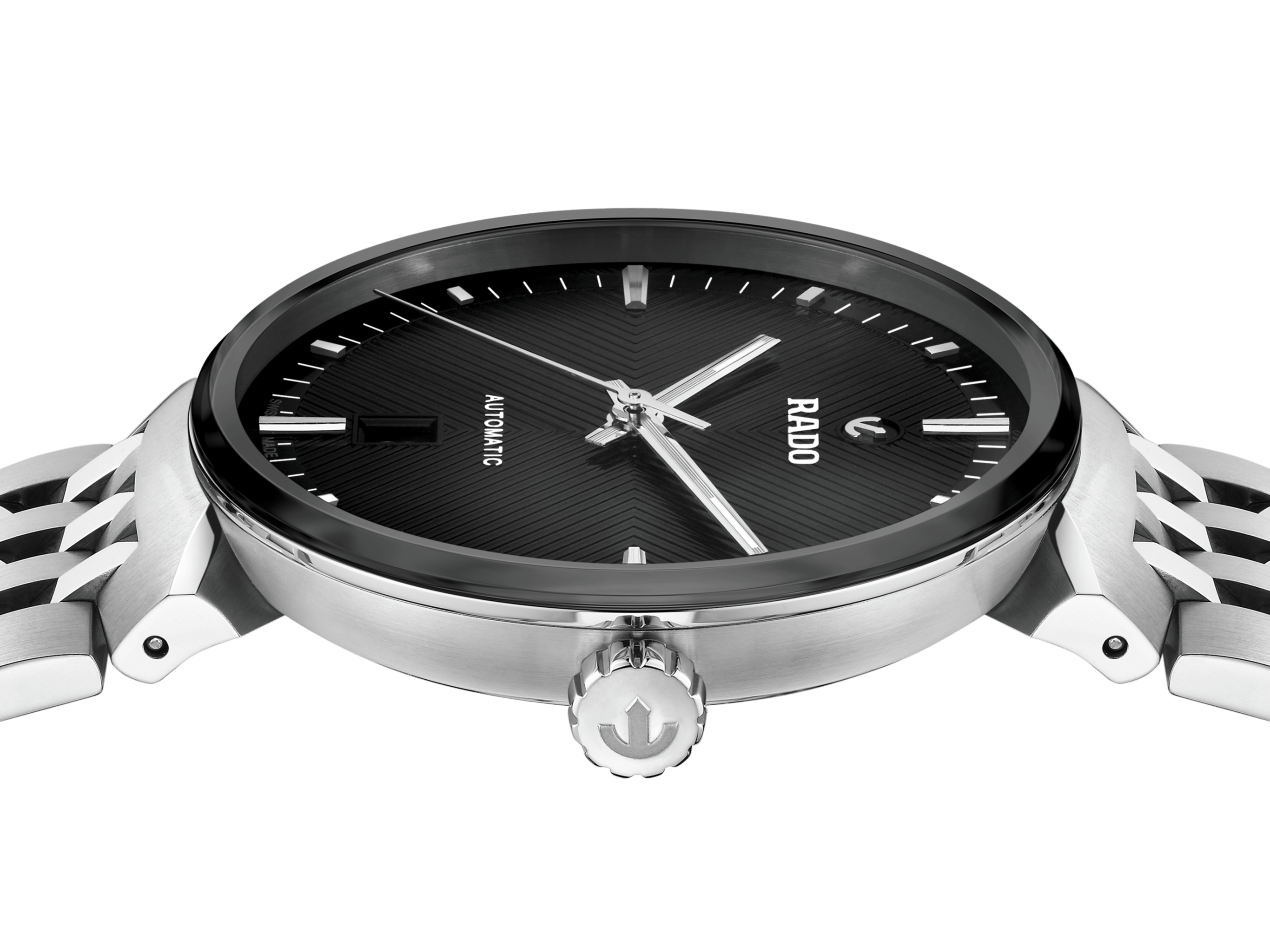 | Dial Features | Date Display / Rhodium Colored Applied Hour Markers / Moving Rado Anchor Symbol |