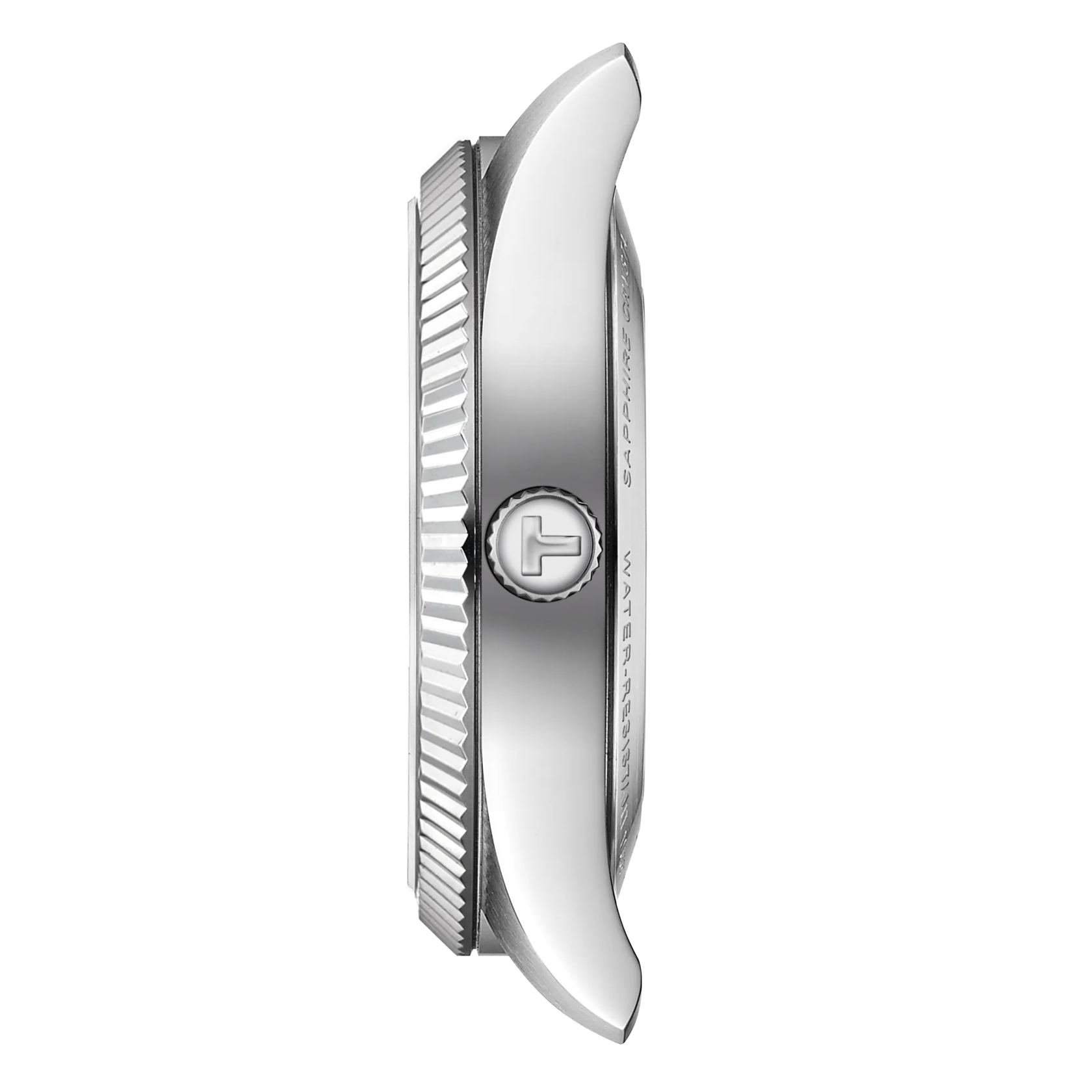 The Ballade COSC is an evolution of a model with deep roots in the Tissot collection. It was reintroduced in 2024 and is now elevated with chronometer-certified performance. At its core is the Powermatic 80 movement, officially recognized for its accuracy and reliability. Its fluted bezel defines the watch’s identity, with finely cut ridges that add depth and character to the case. The Ballade COSC combines certified performance with sharp visual detailing, a watch that carries its precision with presence.
