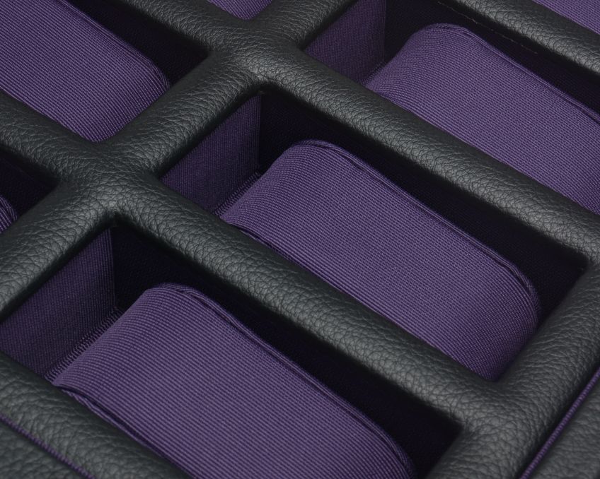 Retro shapes and colors make Windsor a perfect companion for your timepieces. Display and organize your collection beautifully with the Windsor 10-piece watch box. Features chrome finished hardware, locking glass cover, smooth vegan leather, lining and 10-piece watch storage.