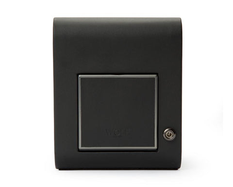 Powder-coated laser cut perforated steel melded with clean, sleek lines. AXIS drives a modern, bold look for safekeeping your timepieces. Our patented technology of counting rotations of the axis of your watch guarantees precise turns per day. Bold luxury, faultless design, take AXIS for a spin. Features locking glass cover, backlit LCD display, matte chrome finished hardware, and a single winding module.