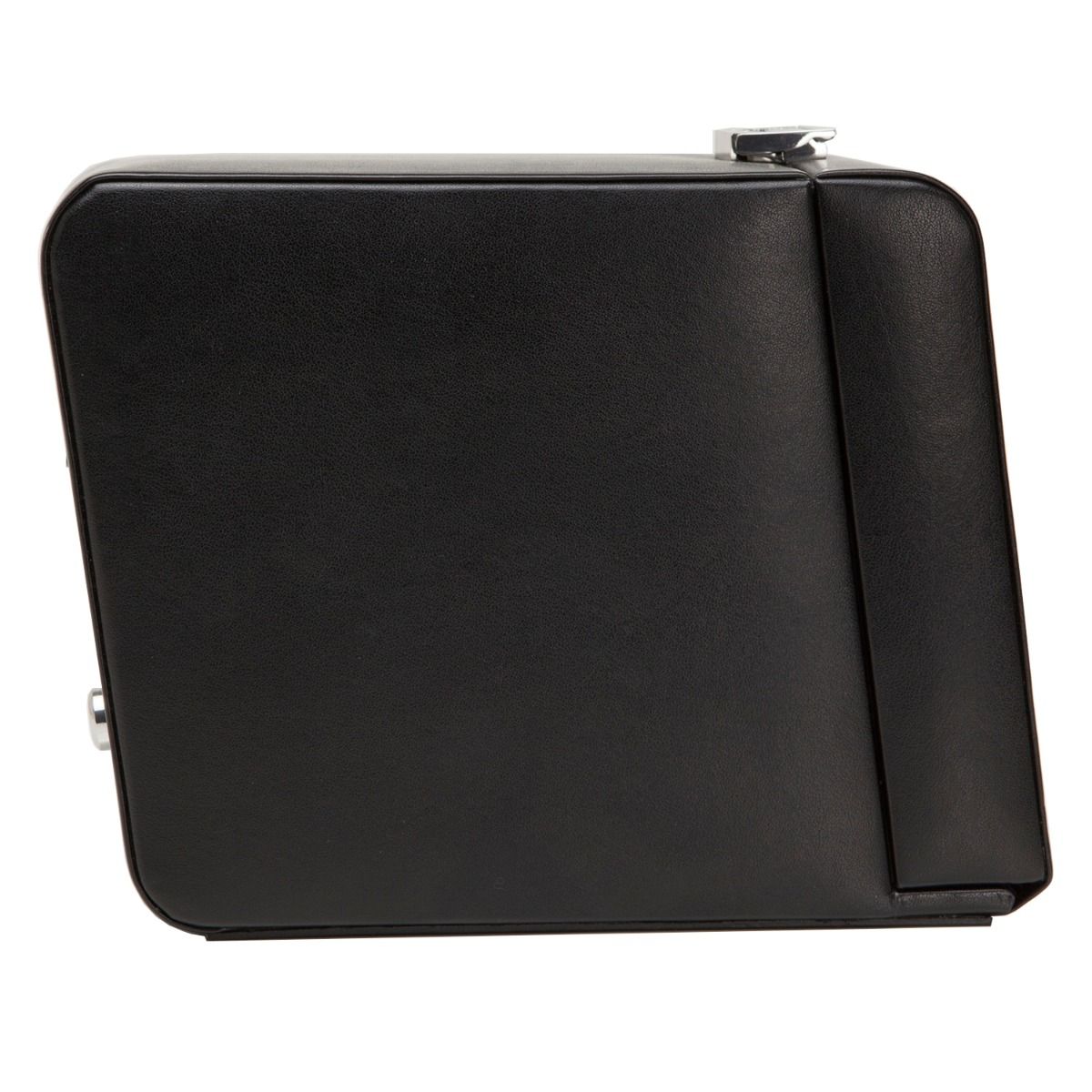 The Heritage Men's collection offers functional, classically designed pieces for your everyday use. This winder includes 1 winding module, latch closure, glass cover, chrome finished hardware, and black smooth vegan leather.