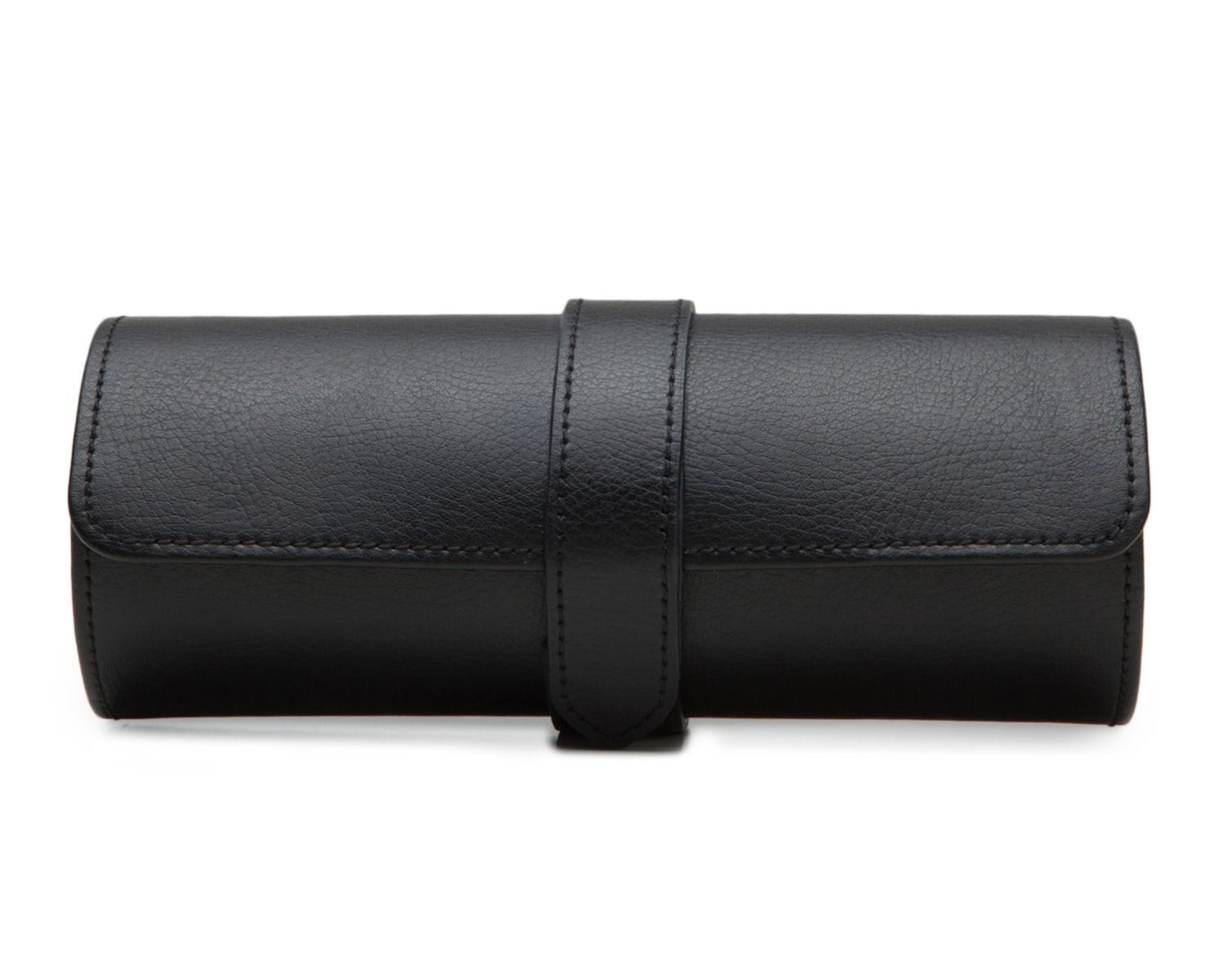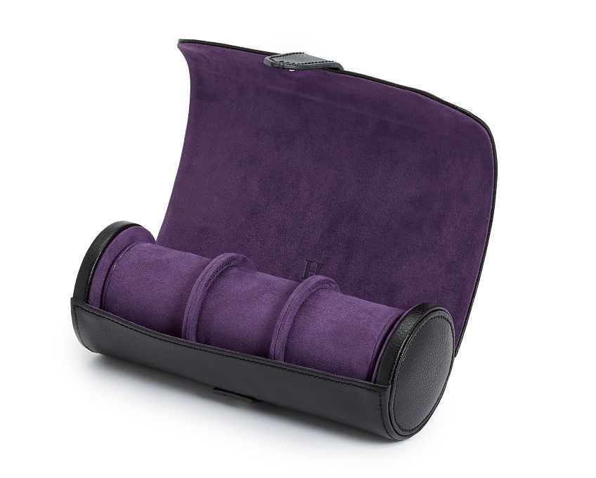 The Heritage Men's collection offers functional, classically designed pieces for your everyday use. Hand crafted in a classic smooth black leather, purple ultrasuede lining and patented Watch Guards to keep your timepieces protected while traveling. Includes space for approximately 3 watches with 2 Watch Guards and snap closure.